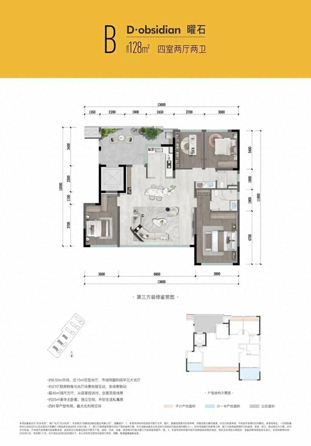 不管你怎样想象,你都不会知道这是一款最极致的129㎡的高端户型,电梯出门之后的空间可以说非常的阔绰,而且很方正,做出了一种极其美妙的花园的效果,如果当做一个花园的空间是否非常理想呢?